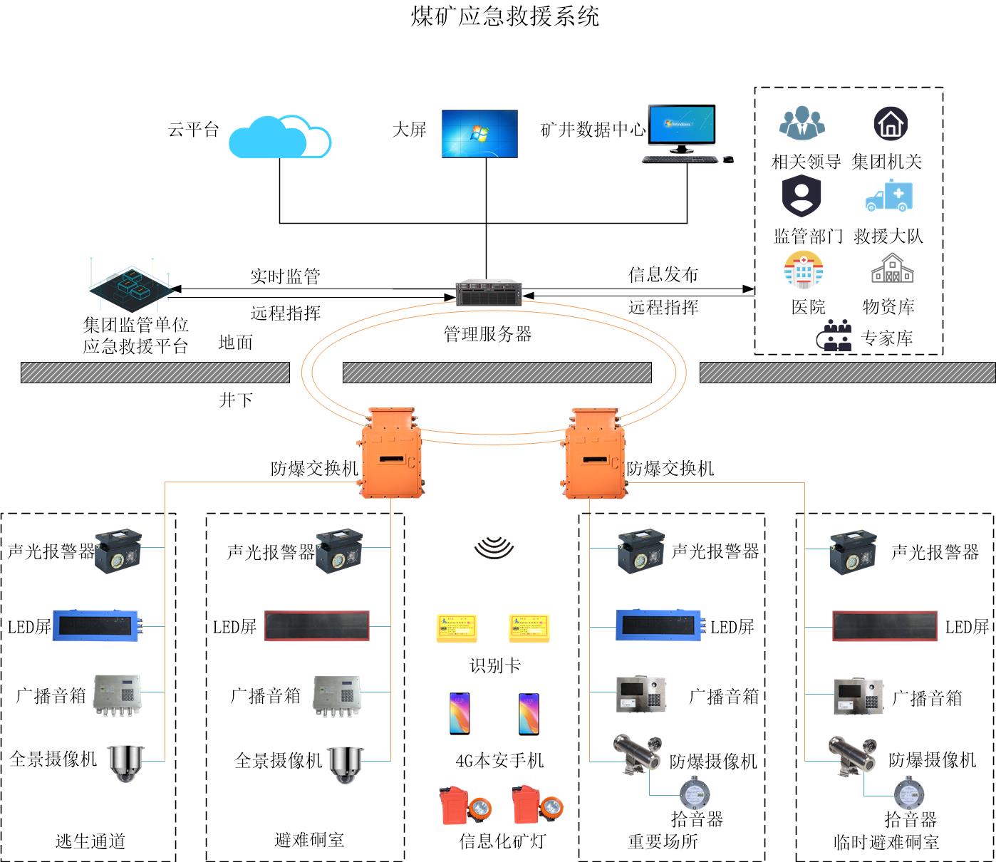 为了解决这种事故,煤矿企业选择在井下部署应急救援系统,煤矿应急救援系统在预案管理、指挥救援、资源管理、重大危险资源和预警等方面的作用。在规范事故应急响应程序和应急处置及救援指挥工作机制,完善应急管理机构上下级,以及与相关部门之间的协作、联动机制,切实提高事故应急响应、联动、指挥和现场处置效能。